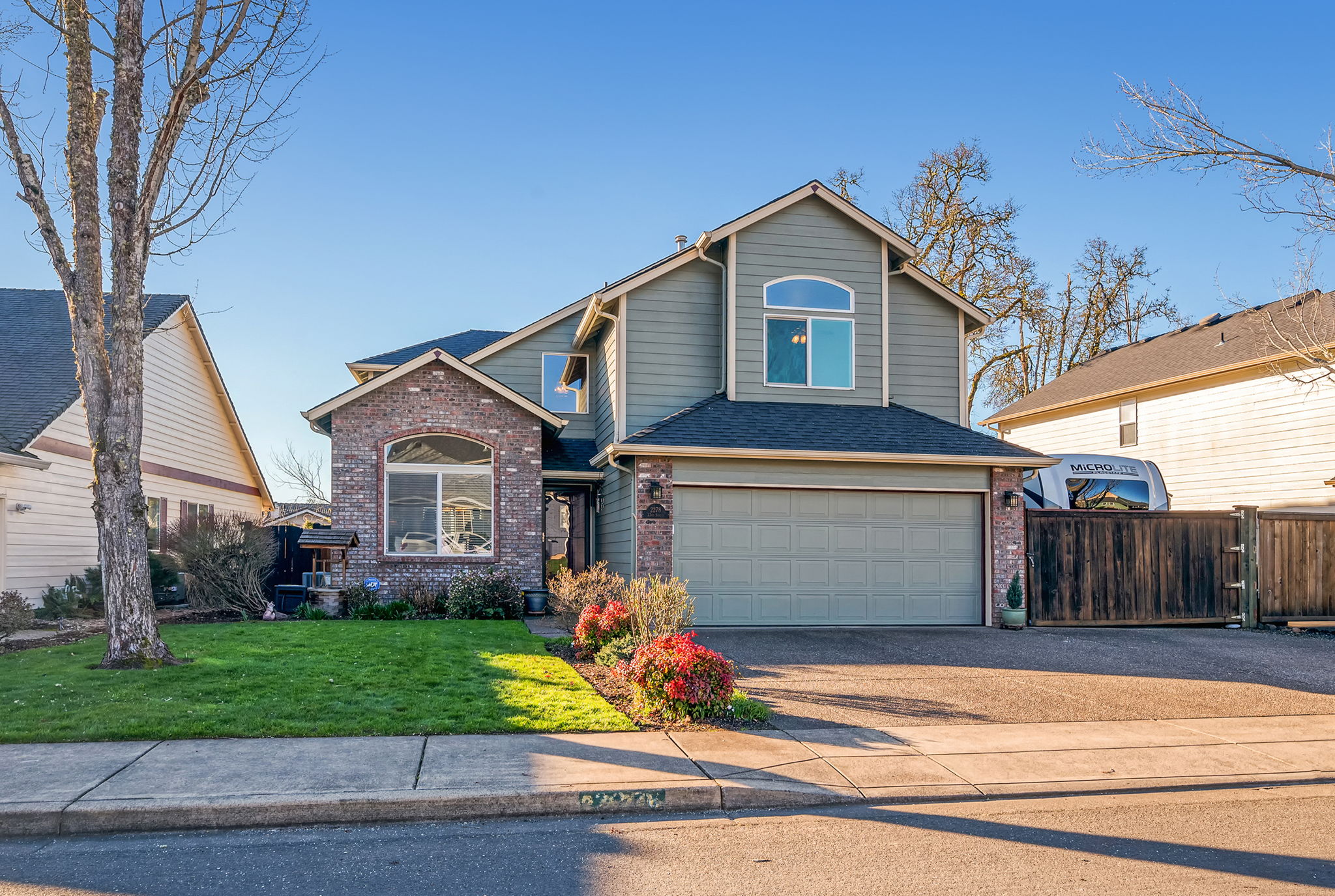 Lovingly maintained home set on a pristine lot in Ambleside Meadows. Backyard overlooks a tranquil wetland with a beautiful barrier of willows for added privacy half of the year! Enter into the open living room with tall ceilings, a huge window and a coat closet. Spacious kitchen with ample counter space is open to a breakfast nook and the cozy family room with a gas fireplace. From the family room, step out onto the covered deck with a retractable awning and take in the peaceful water view. Ducks and other native birds are frequent visitors. Back inside you will find a formal dining room, laundry room and 1/2 bath downstairs. Upstairs are 4 bedrooms and 2 full bathrooms. You will be sure to love the large, vaulted primary suite with great natural lighting and a walk-in closet + bonus closet! Carpet and vinyl flooring is new as well as the bathroom vanities with their gorgeous white quartz countertops! RV Parking with hookups! Pride of ownership is evident throughout! Close to hospitals, schools and freeway access! Rare opportunity to own a city property with a water view! Don't miss out!